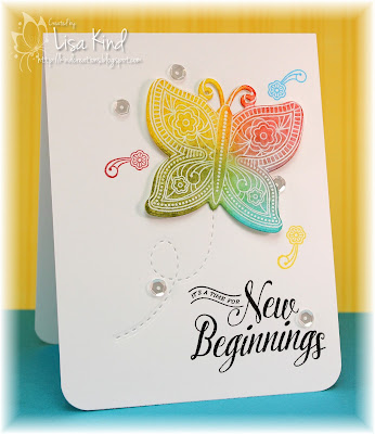 What a gorgeous rainbow butterfly, Lisa ... so delicate and intricate ... love the embossed trail! Hugs, Anita :)